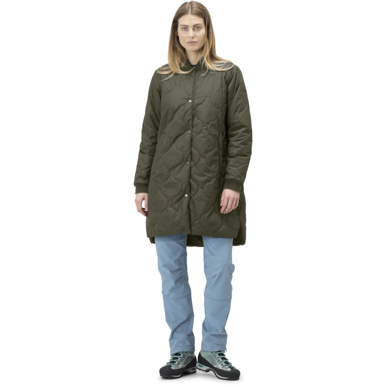 La capa exterior de este abrigo largo aislante supercómodo está confeccionada en nailon 45D reciclado resistente al viento y repelente al agua. Ofrece un equilibrio perfecto entre funcionalidad y tacto suave y está aislado con PrimaLoft® Silver Bio™ sintético de 100 g, que tiene una excelente relación calidez-peso.