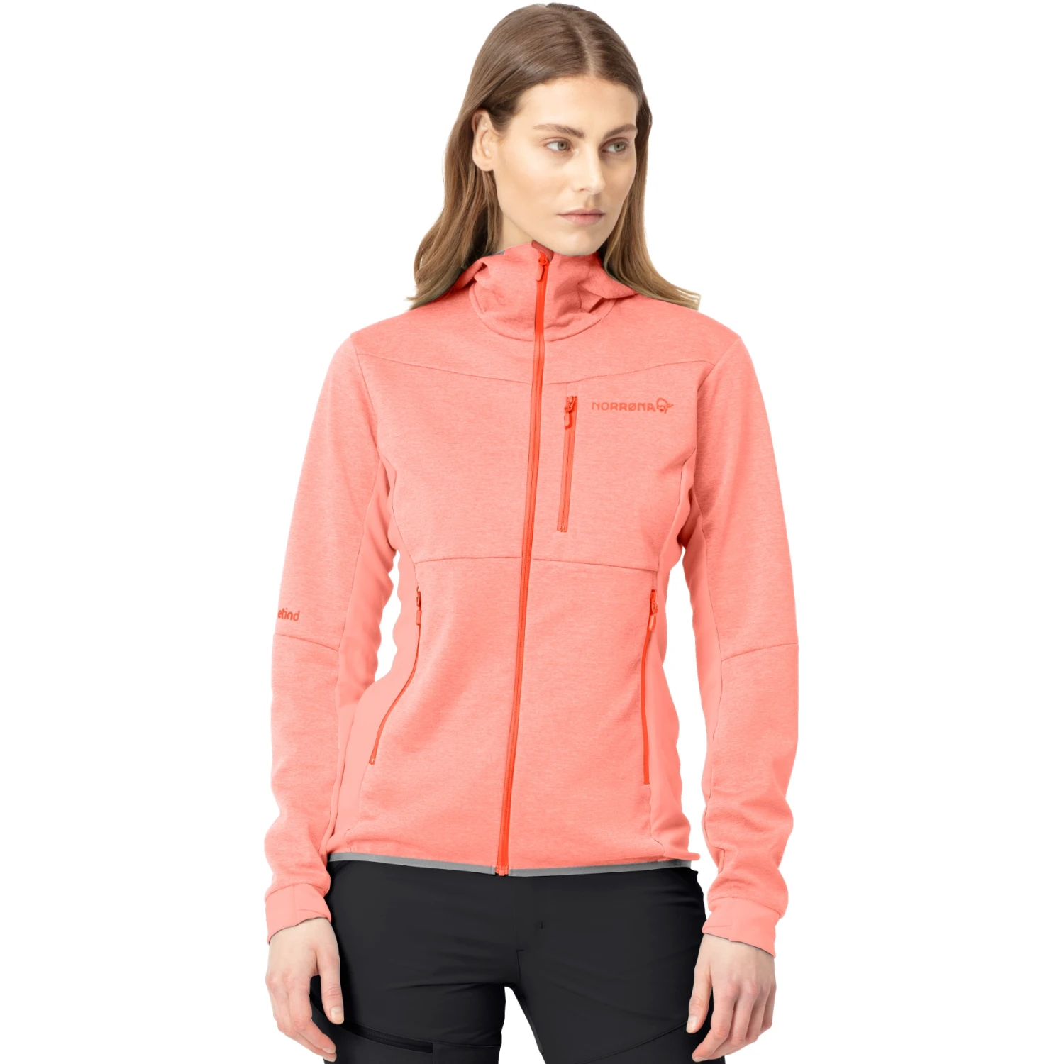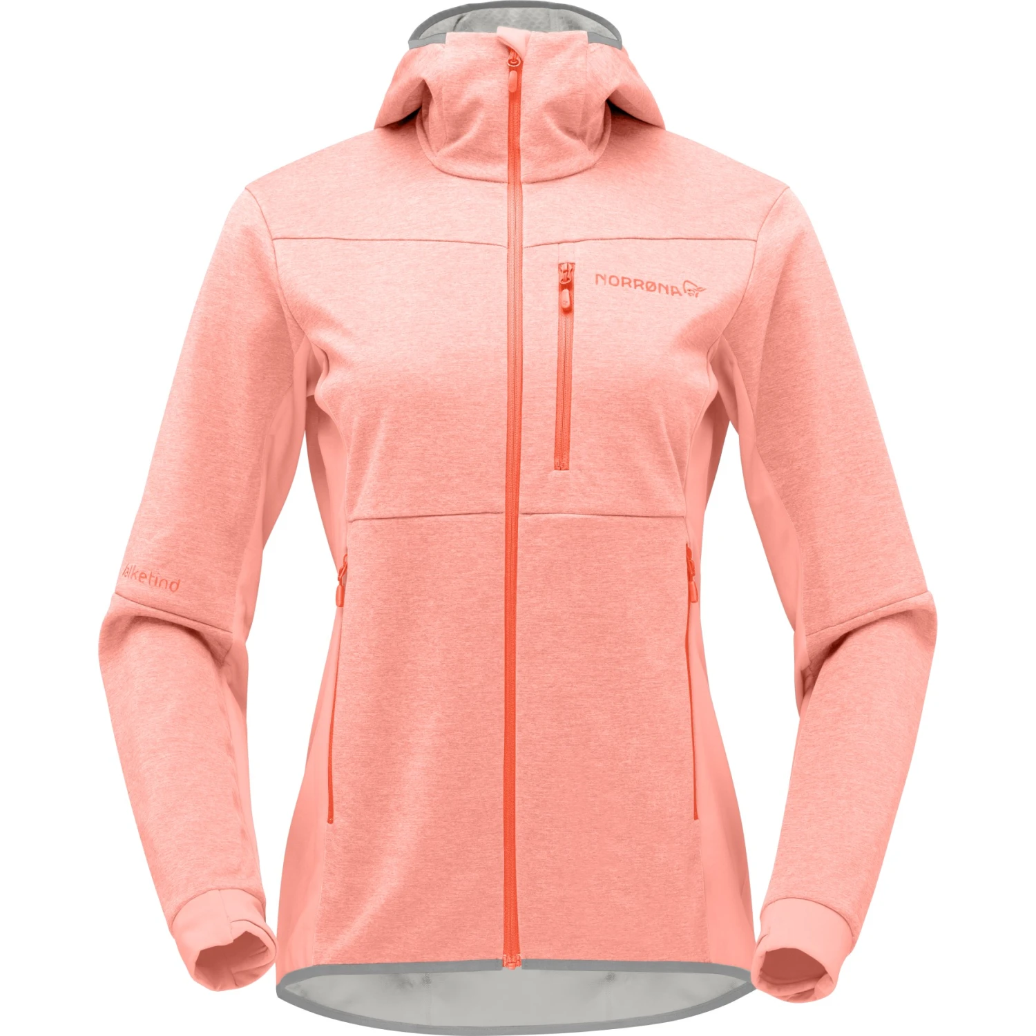Norrona Chaqueta Mujer – Falketind Warm2 Octa Hood – Orange Alert/Peach Amber